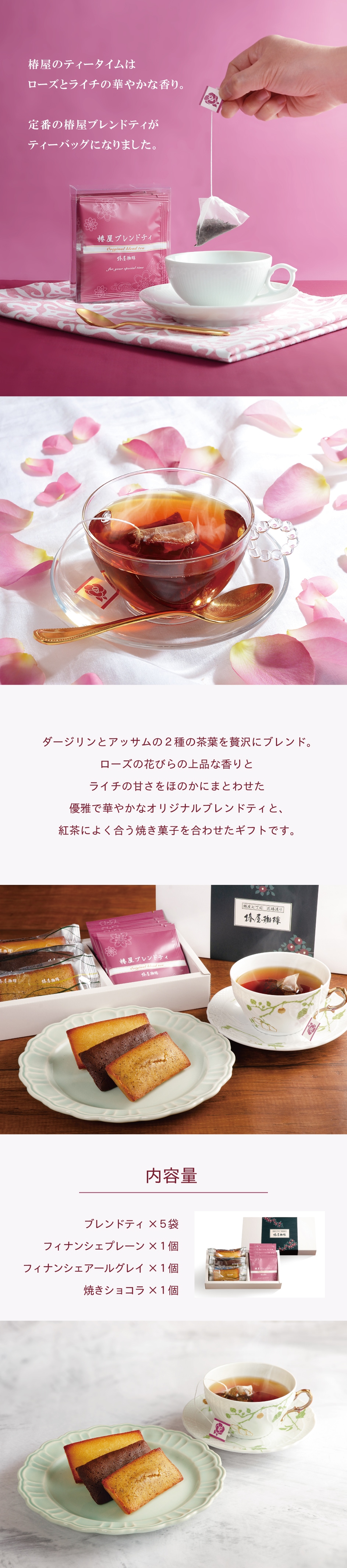 「なでしこ」は、華やかな香りの椿屋ブレンドティと、紅茶にぴったり合う焼き菓子を詰め合わせた上品なギフトセットです。ローズとライチの香りが漂う紅茶は、優雅な時間を演出し、焼き菓子の甘さと見事に調和。ひと口ごとに広がる香りと味わいは、心を穏やかにしてくれます。